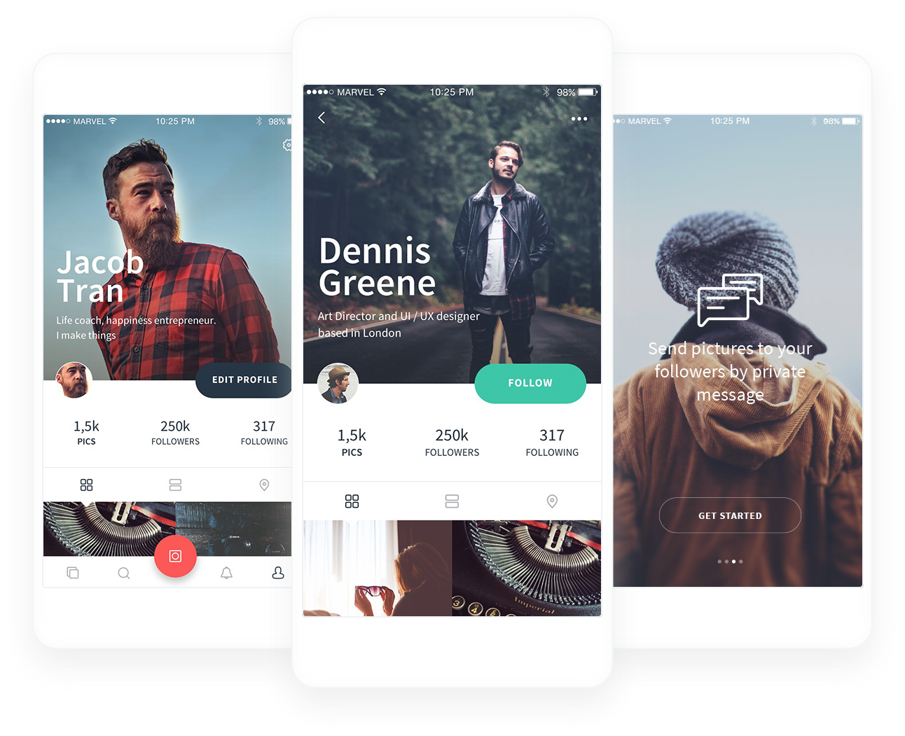 It all starts with a Tweet and a reply. Co-Founder of Marvel , Murat Mutlu, asked us to design a bunch of UI Kit for his online prototype tool. First one was a Photo Sharing App UI Kit